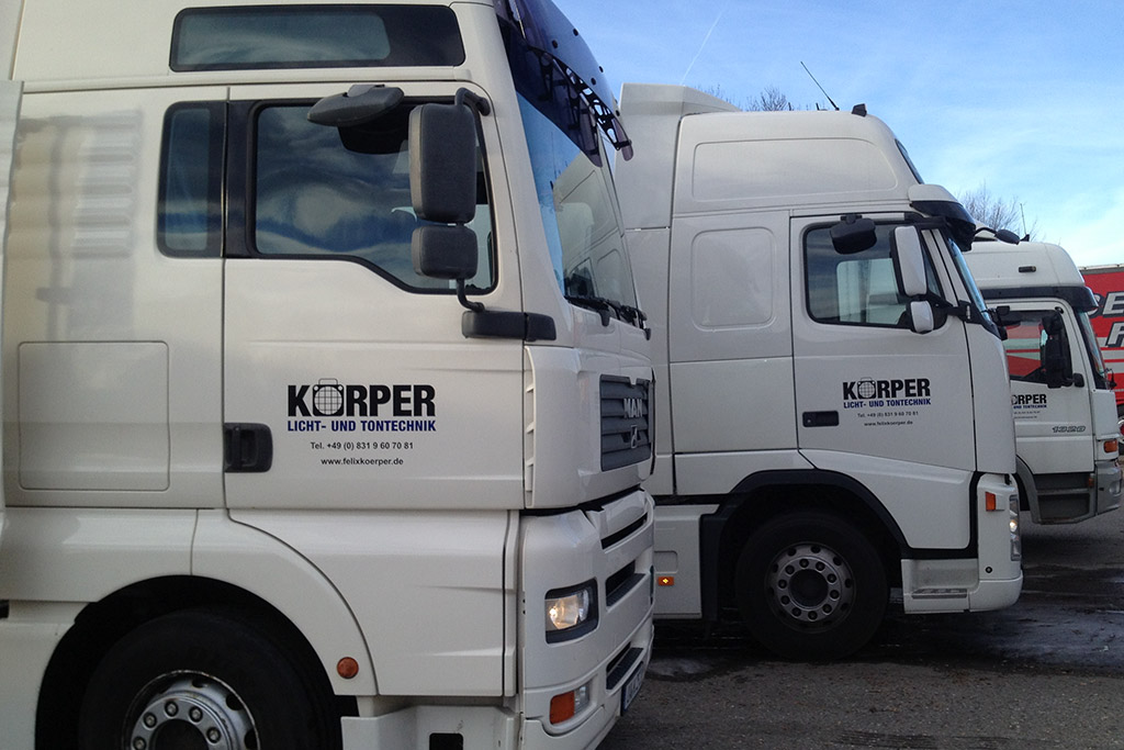 Durch unseren modernen Fuhrpark bieten wir bedarfsgerechte, kostengünstige und termingerechte Transportlösungen für Ihre und unsere Produktionen. Wir liefern dabei das Material direkt zum Veranstaltungsort und das europaweit. Ein zuverlässiger und schneller Transport ist für uns selbstverständlich.